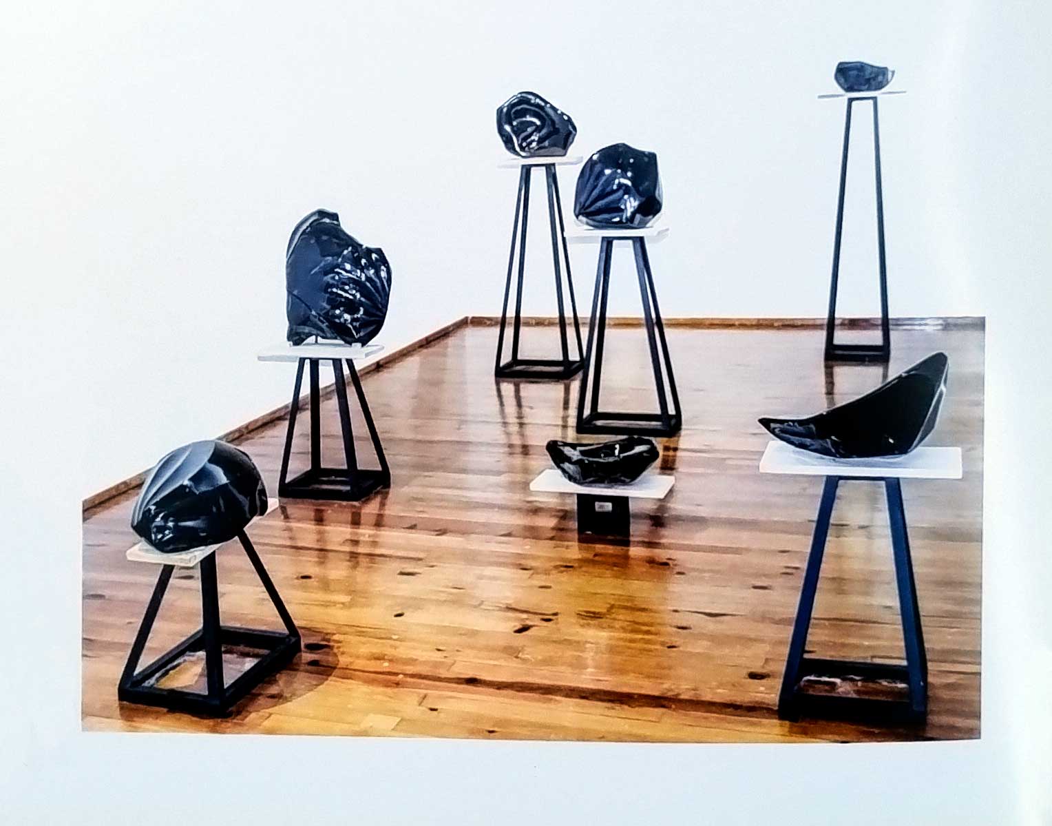 PASIÓN 7 esculturas. Obsidiana, madera, metal y pigmento 85x210x210 cms