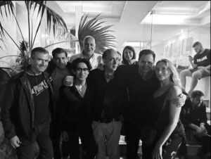 La música era un viaje en el tiempo. La DJ —una ninfa con cara de saberse todos los secretos de los 80 y los 90— pinchaba discos que nos hacían retroceder a los días en que el mundo parecía más sencillo, o al menos más ruidoso. Michael Jackson se mezclaba con Los Fabulosos Cadillacs, y de pronto sonaba un himno del noreste caliente 45° de Plastilina Mosh que hacía que hasta los más duros se pusieran a bailar como si nadie los viera. La pista era un caos bendito: primos y sobrinos Coronel moviéndose como si la vida dependiera de ello; Martín Coronel con su camisa desabotonada y un mezcal en la mano; Héctor Ramírez viendo bailar a sus amigos como si estuvieran peleando con el ritmo; Bety Perea estaba bailando como si nos estuviera contando historias de las que solo ella sabía el final, riendo con esa complicidad que solo los años y las copas pueden forjar. Ximena Jordán, con su elegancia de otro mundo, se movía como si flotara, dejando un rastro de chispa que encendía a todos. Juan Pablo Varela y Assaf Katz Levy, los compas inseparables, estaban en la pista de baile armando un torneo de quién podía sacar los pasos prohibidos más locos de los días. Y Juan, el festejado, con esa mirada de quien ha visto demasiadas cosas pero aún se sorprende, brindaba con mezcal como si cada trago fuera una plegaria.