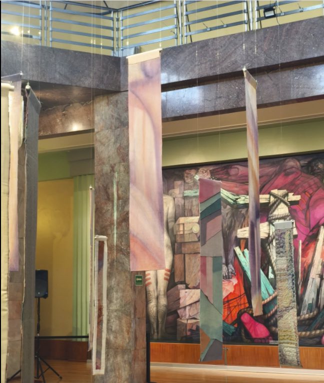 La elección del mural Liberación como punto de partida no es casual. González Camarena, con su utopía inacabada, dejó en sus pinceladas una promesa de libertad que Carrillo retoma y fragmenta, como si quisiera recordarnos que toda liberación es incompleta, que siempre hay más capas por descubrir. Su trabajo con textiles —anclado en prácticas ancestrales— es un acto de rebeldía silenciosa contra la rigidez de la historia oficial, contra los muros que pretenden ser inamovibles.