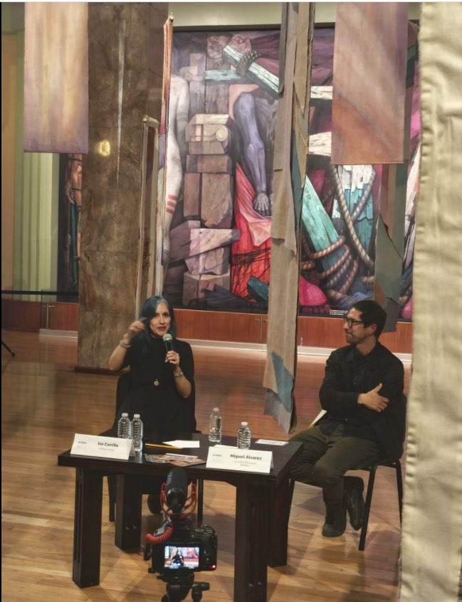 En la tarde del 17 de junio de 2025 el Museo del Palacio de Bellas Artes se convirtió en un escenario donde el tiempo parecía detenerse, como si los muros mismos contuvieran el aliento. Allí, en el área de murales, se presentó Espectros, la instalación de Isa Carrillo, tercera entrega del proyecto Muralismo Desbordado. Como si Camarena hubiera paseado entre las telas suspendidas, uno podía imaginar su pincel dibujando líneas sobre esta obra que, más que verse, se siente, se respira, se camina.
